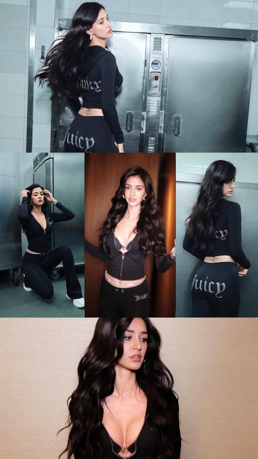 Disha Patani dropped pictures from her striking appearance at a recent event in Mumbai, embracing a bold Y2K-inspired look by Juicy Couture.She wore a skin-tight diamanté modal hoodie featuring a crystal “Juicy” logo at the back, priced at ₹8,499, adding sparkle to the athleisure fit.The fitted hoodie with a zip & front pockets. The actor added deep neckline to gave the look a sultry yet sporty edge.She paired it with matching body-hugging tracksuit bottoms that also featured the signature crystal “Juicy” logo on the hips.Disha kept her styling minimal, letting the statement outfit remain the focal point.She styled her hair in long, voluminous waves, lending a glamorous touch to the sporty ensemble.The coordinated set created a sleek, sculpted silhouette, highlighting her toned physique as the look perfectly balanced comfort and high-fashion.